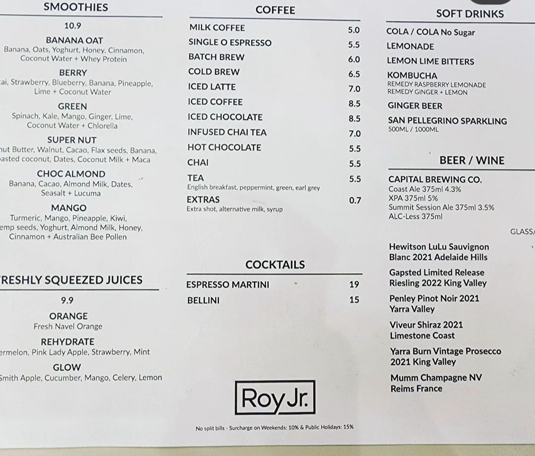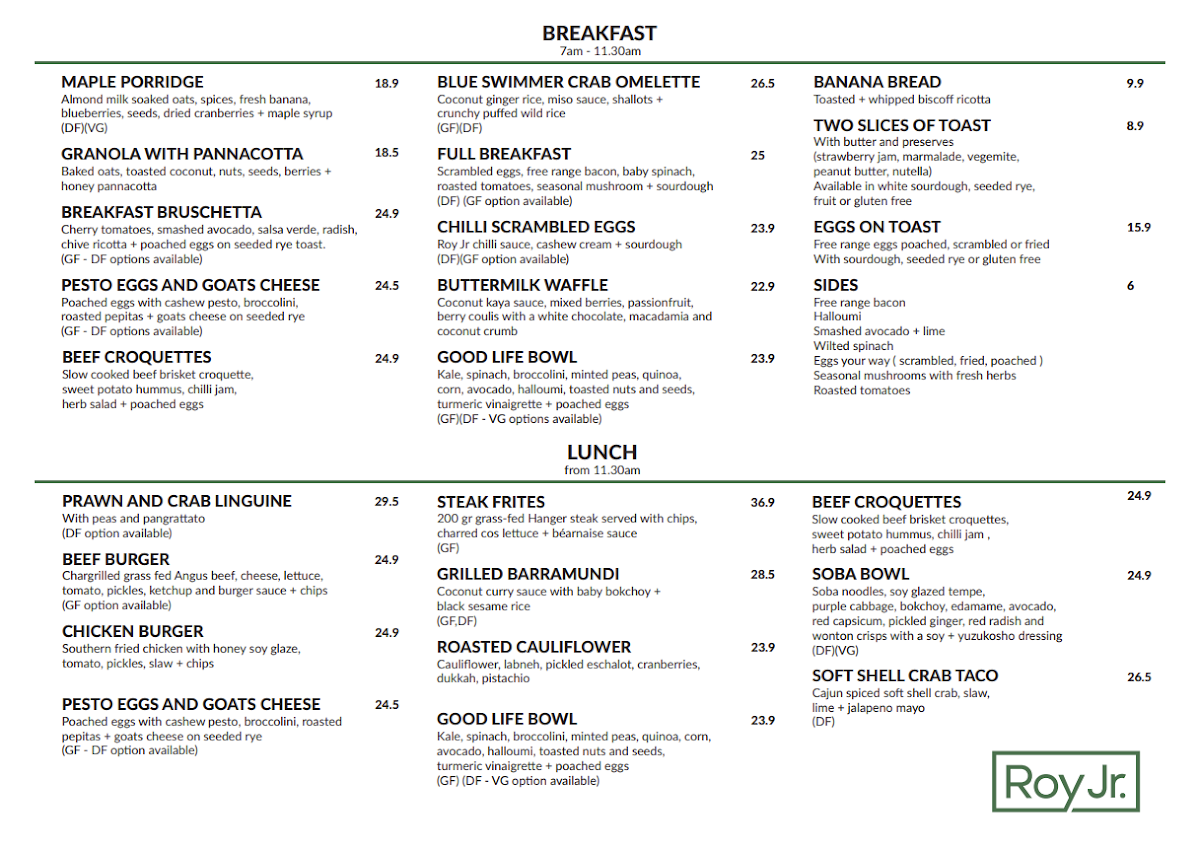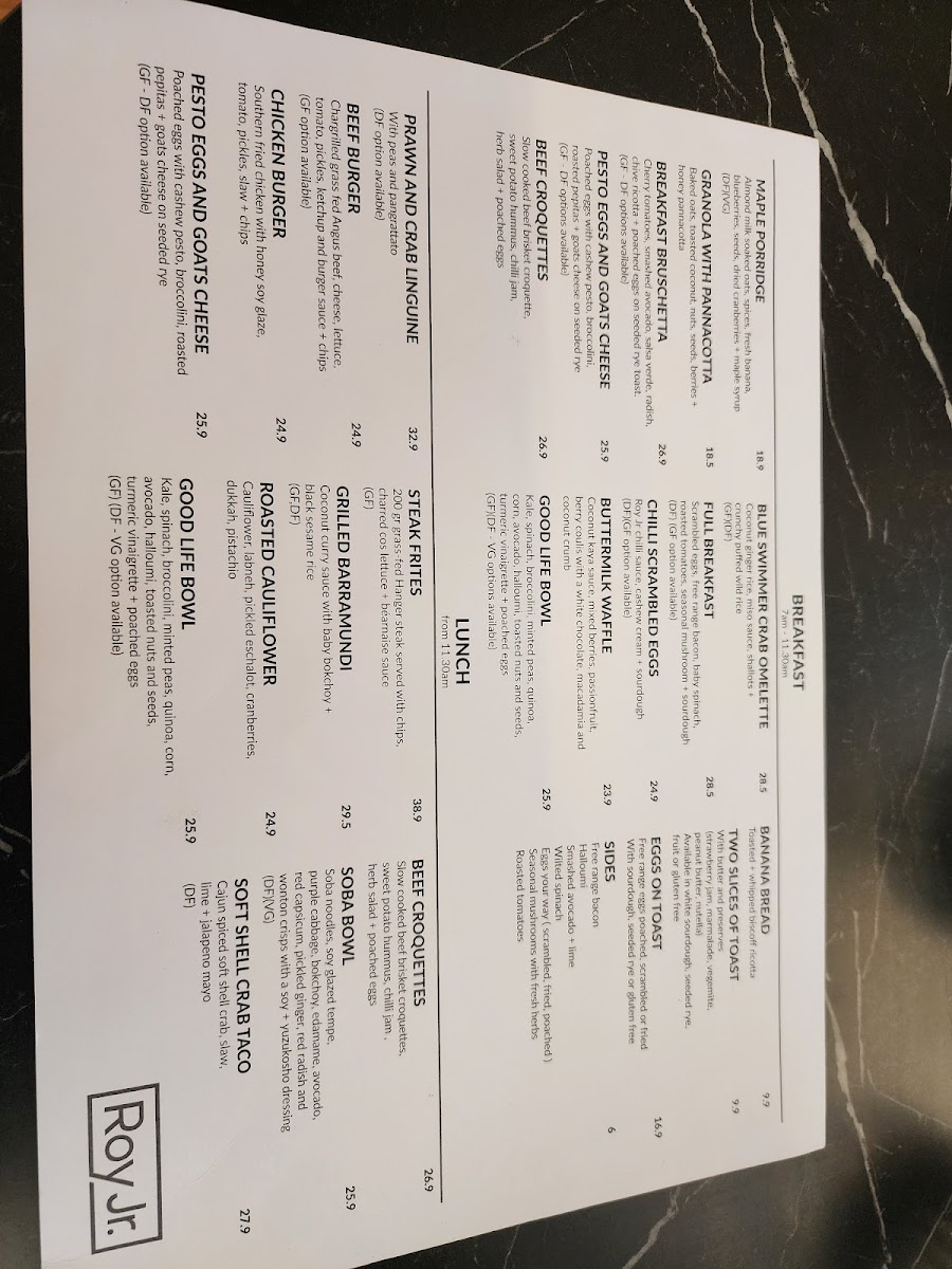 As the day unfolds, the lunch menu shines with options like the indulgent Prawn and Crab Linguine, harmonizing seafood and flavors perfectly. From the warm, accommodating service to the delicious dishes that keep patrons coming back, Roy Jr. is truly a gem in Canberra's culinary landscape.